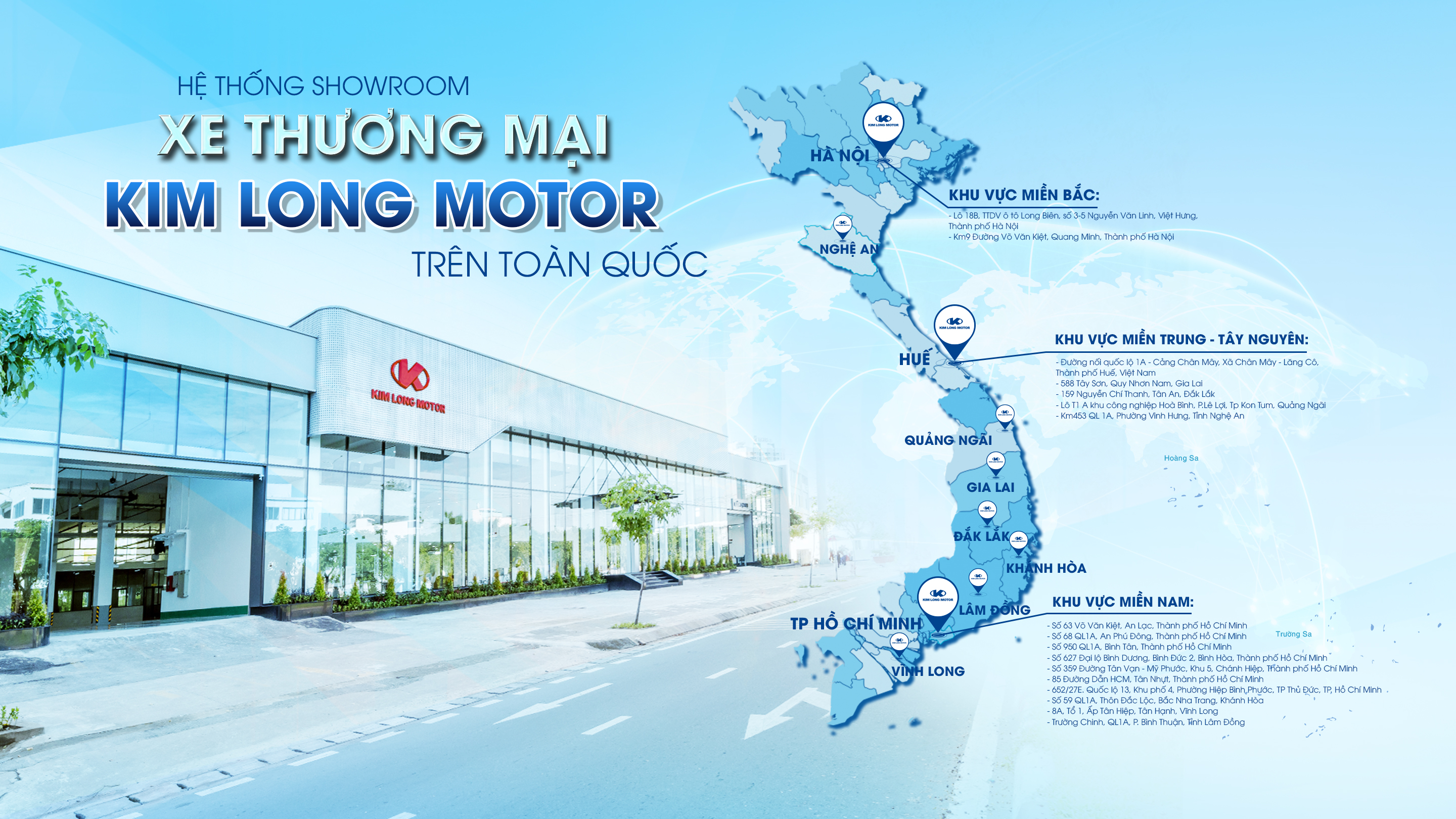 Alongside its strategy of researching, developing, and manufacturing high–quality commercial vehicles, KIM LONG MOTOR places special emphasis on building a professional and unified nationwide distribution system. With the customer–centric orientation, the network of showrooms and authorized dealers is strategically planned and developed in key regions, bringing products and services closer to customers across the country.
