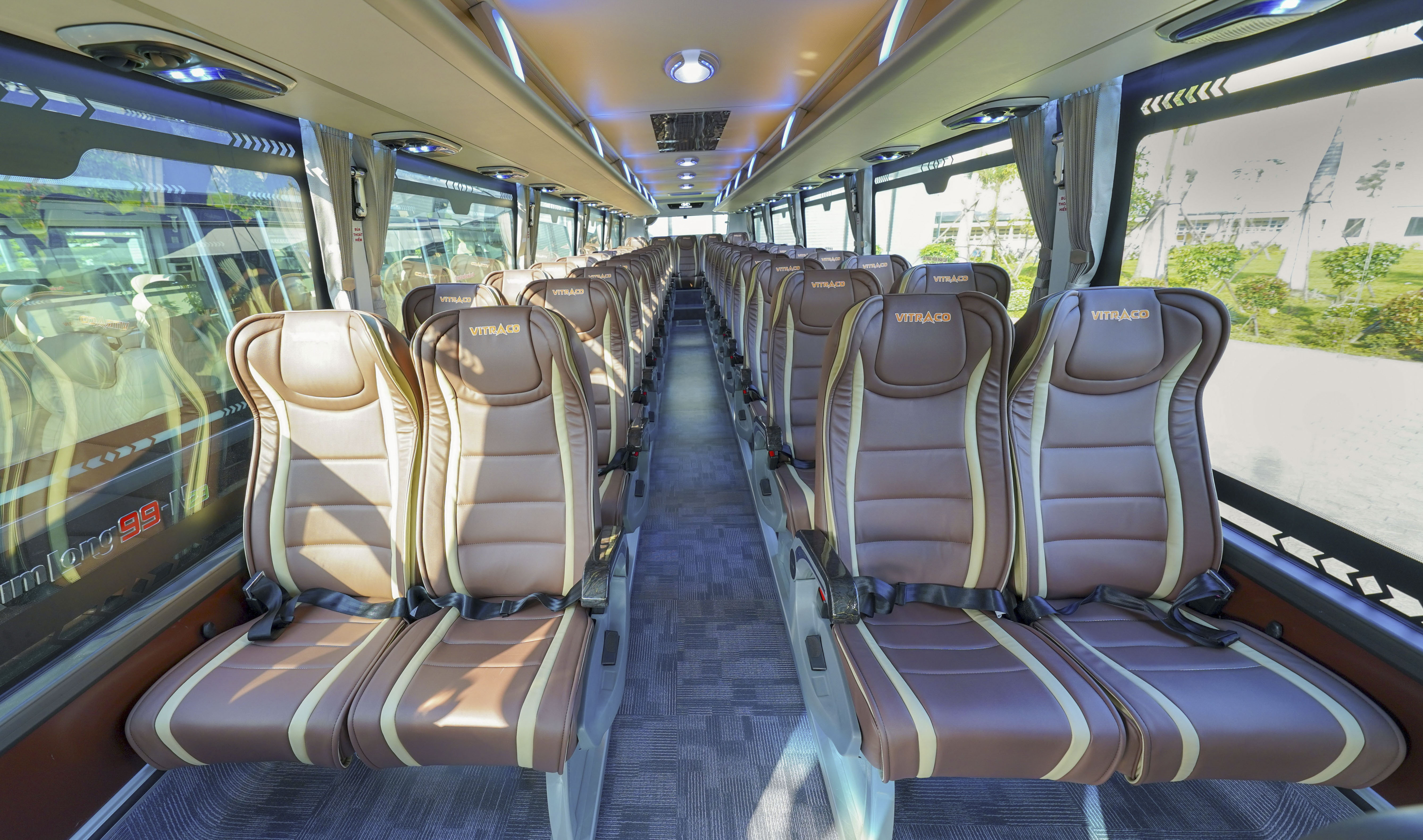 Bên cạnh đó, KIMLONG 99-N29 là phiên bản xe bus ghế ngồi cao cấp, nổi bật với thiết kế sang trọng và khoang hành khách được tối ưu không gian. Xe được trang bị ghế nhập khẩu bọc da cao cấp, tích hợp cổng sạc USB/Type C, cùng loạt tính năng massage, làm mát, sưởi ấm, ngả lưng và bàn ăn gấp gọn, đáp ứng tốt nhu cầu khai thác dịch vụ chất lượng cao, đề cao sự tiện nghi và trải nghiệm hành khách.