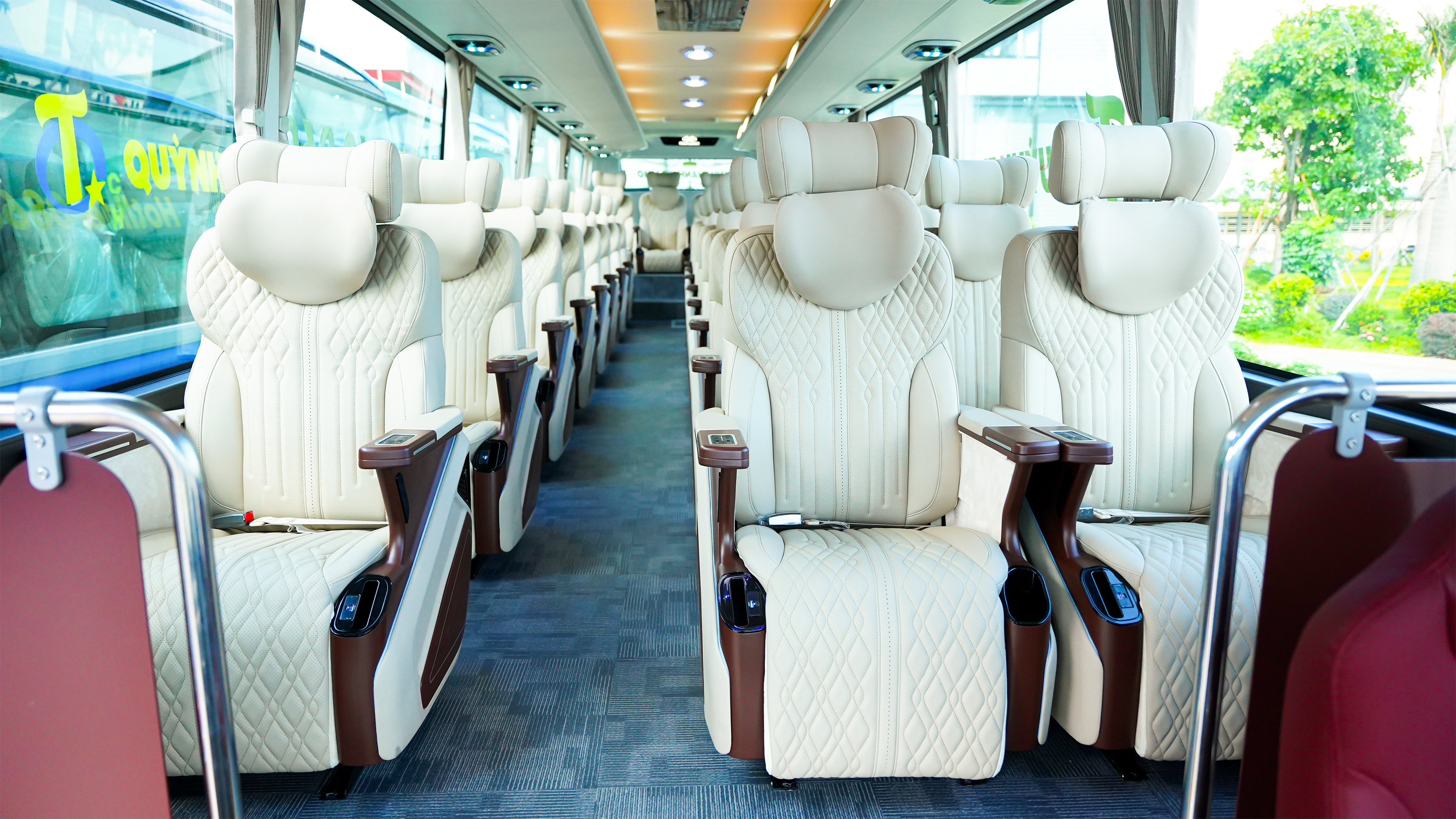 KIMLONG 99-N29 là dòng xe bus ghế ngồi 29 chỗ sở hữu thiết kế nội thất nổi bật. Toàn bộ ghế nhập khẩu được bọc da cao cấp mang đến cảm giác sang trọng. Bên cạnh đó, dòng xe bus này còn chinh phục các vị khách khó tính với các tính năng: ngả lưng và nâng bệ chân, bàn ăn gấp gọn vừa tiết kiệm không gian nhưng không kém phần tiện lợi. Bên cạnh đó, mỗi ghế đều được tích hợp cổng sạc USB/Type C. Đây là một tiện ích nhỏ nhưng vô cùng hữu ích, giúp hành khách luôn duy trì kết nối và sạc các thiết bị điện tử một cách tiện lợi trong suốt hành trình.