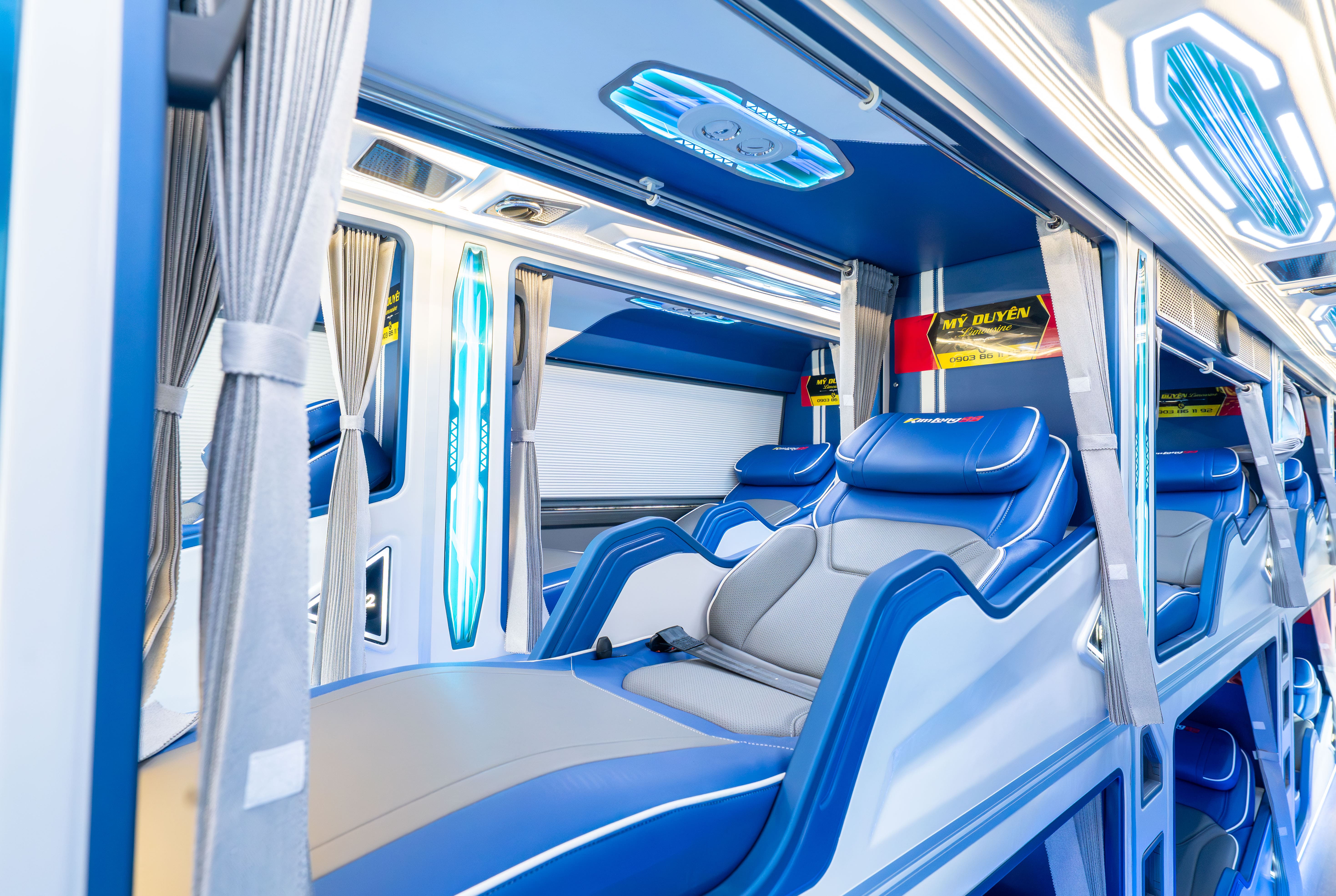 Xe bus giường nằm KIMLONG 99-G34 phiên bản 34 giường phòng được thiết kế riêng biệt. Ngoài việc sở hữu những đường nét ngoại thất mạnh mẽ hiện đại, dòng xe còn thu hút khách hàng bởi nội thất sang trọng, tiện nghi. Đặc biệt, mỗi khoang giường được bọc da simili cao cấp mang lại cảm giác êm ái trong suốt hành trình, mỗi giường trang bị cổng sạc đa năng cho từng khoang, tủ lạnh dung tích 35L, hệ thống điều hòa, khoang giường rộng rãi, rèm kéo riêng tư... Toàn bộ nội thất hoàn thiện dựa trên tiêu chuẩn cao cấp, tạo nên không gian di chuyển thoải mái và tiện nghi - khẳng định vị thế và đẳng cấp của một dòng xe dẫn đầu.