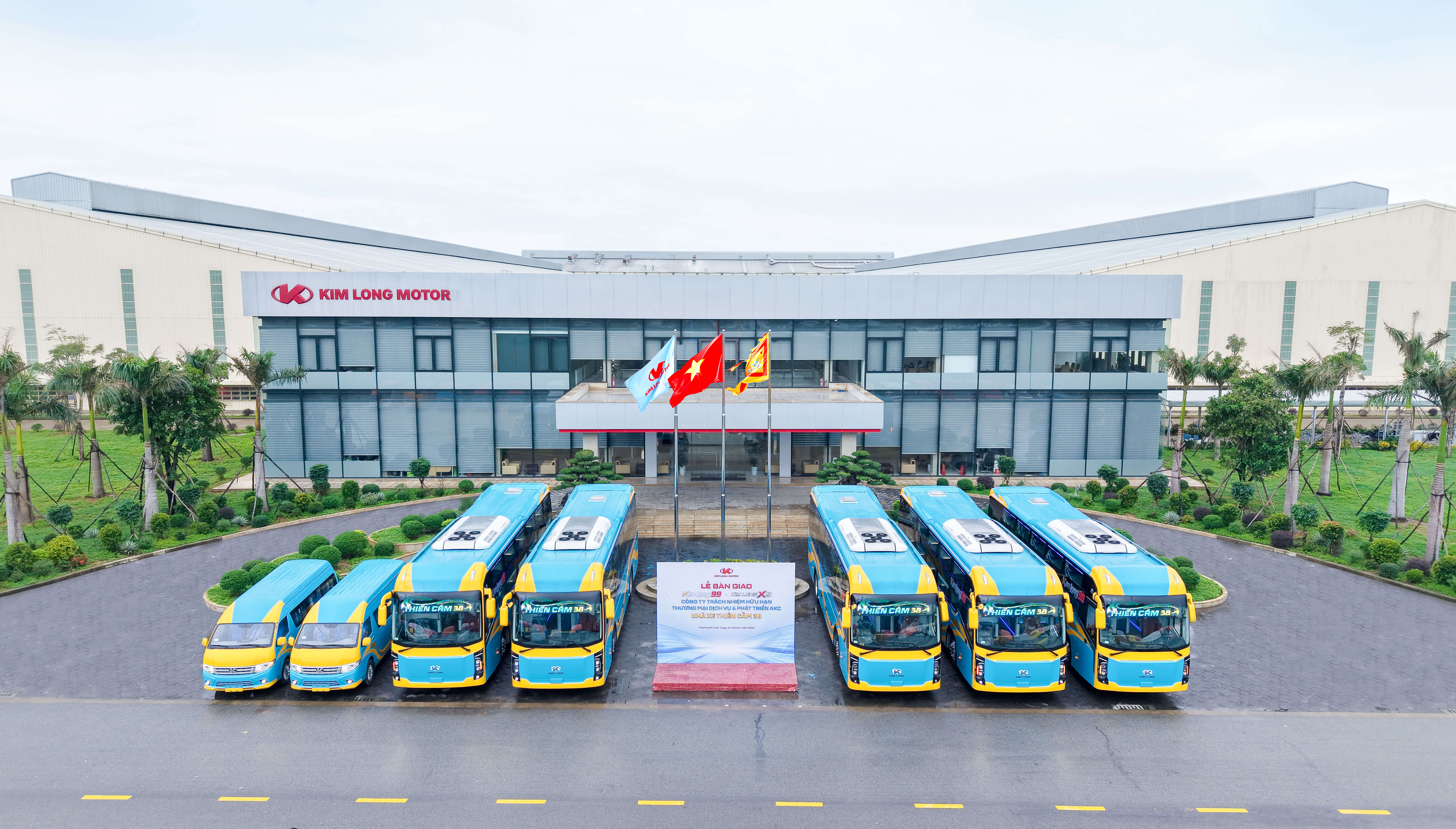 Ngày 21/11/2025, KIM LONG MOTOR đã hoàn tất bàn giao lô 07 xe bus mang thương hiệu KIMLONG bao gồm xe bus giường nằm KIMLONG 99-G22 (02 chiếc), KIMLONG 99-G32 (03 chiếc) và minibus KIMLONG X9 (02 chiếc) cho Công ty TNHH Thương mại Dịch vụ và Phát triển AKC. Đây là lô xe đầu tiên, đánh dấu khởi đầu cho sự hợp tác giữa hai bên, hứa hẹn mang đến nhiều thay đổi tích cực trong ngành dịch vụ vận tải hành khách.