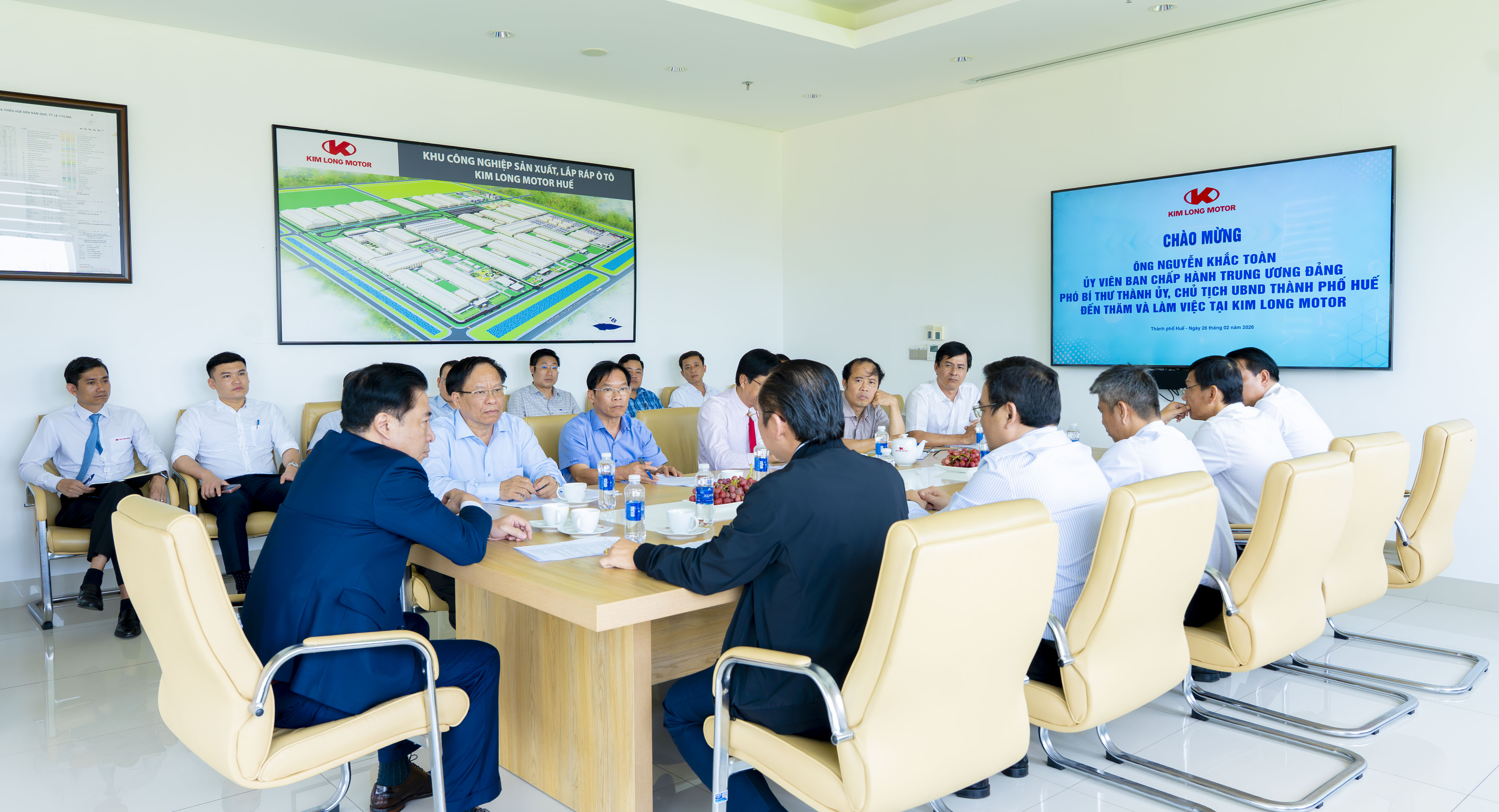 Chiều 26/2, trong không khí phấn khởi những ngày đầu năm mới Bính Ngọ 2026, KIM LONG MOTOR vinh dự đón tiếp đồng chí Nguyễn Khắc Toàn - Ủy viên Ban chấp hành Trung ương Đảng, Phó Bí thư Thành ủy, Chủ tịch UBND TP.Huế đã dẫn đầu đoàn công tác đến thăm, làm việc tại Khu công nghiệp sản xuất, lắp ráp ô tô KIM LONG MOTOR Huế.